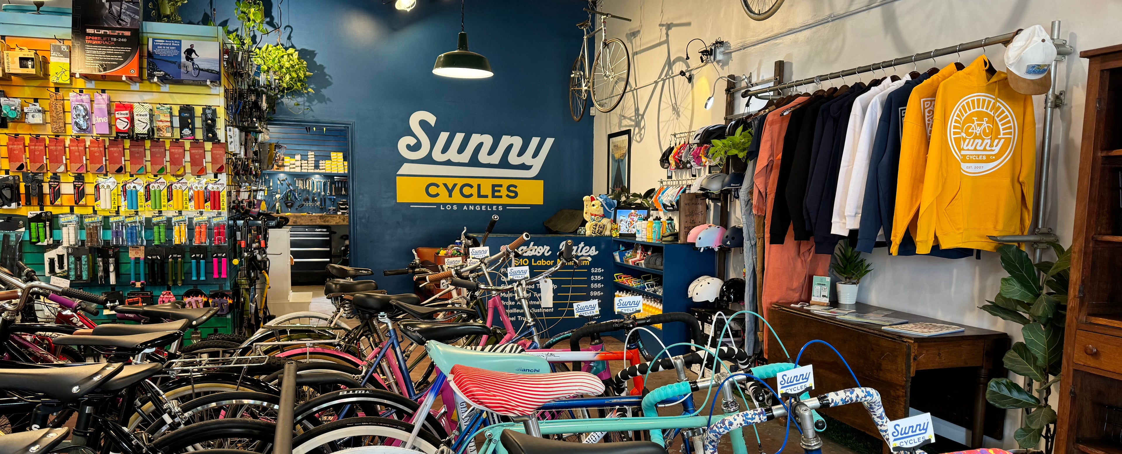 At Sunny Cycles, we're not just a bike shop; we're your neighborhood bicycle shopโa vibrant community of cyclists and enthusiasts who believe that every ride is a journey worth celebrating. Founded by Anna Martin, a passionate cyclist and a mother who knows the joys of pedaling with purpose, we've transformed from LA Brakeless Bicycles into Sunny Cyclesโa space that echoes our ever-evolving love for cycling.